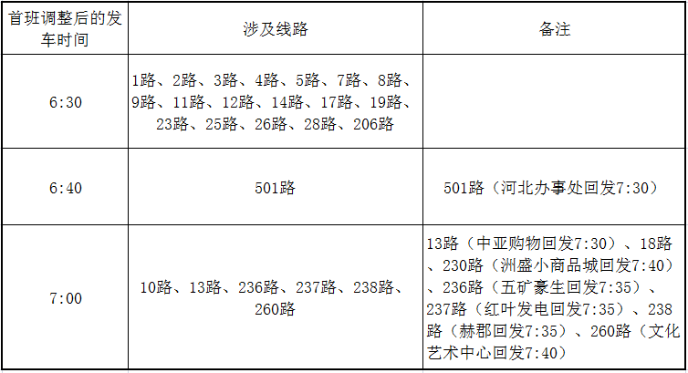 5.通養(yǎng)老服務(wù)中心班次:12路,2月15日—18日(三十至初三)首班車6:12(火車站)調(diào)整為6:30,其余班次不變;14路,2月15日—18日(三十至初三)首班車6:00(公司公司)調(diào)整為6:30,。